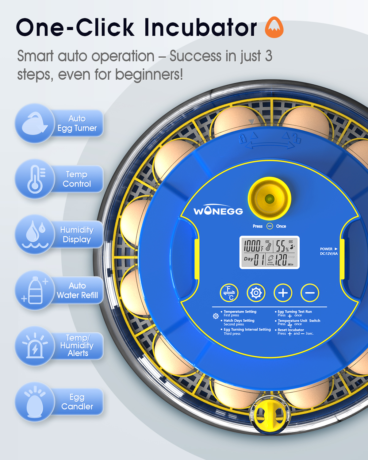 🐥[Versatile Professional Performance] – Designed to hold: 18 standard eggs such as chicken or duck; 40 smaller eggs like quail or parrot eggs. For best performance and product lifespan, please refer and follow the manual to reset and set up the machine.