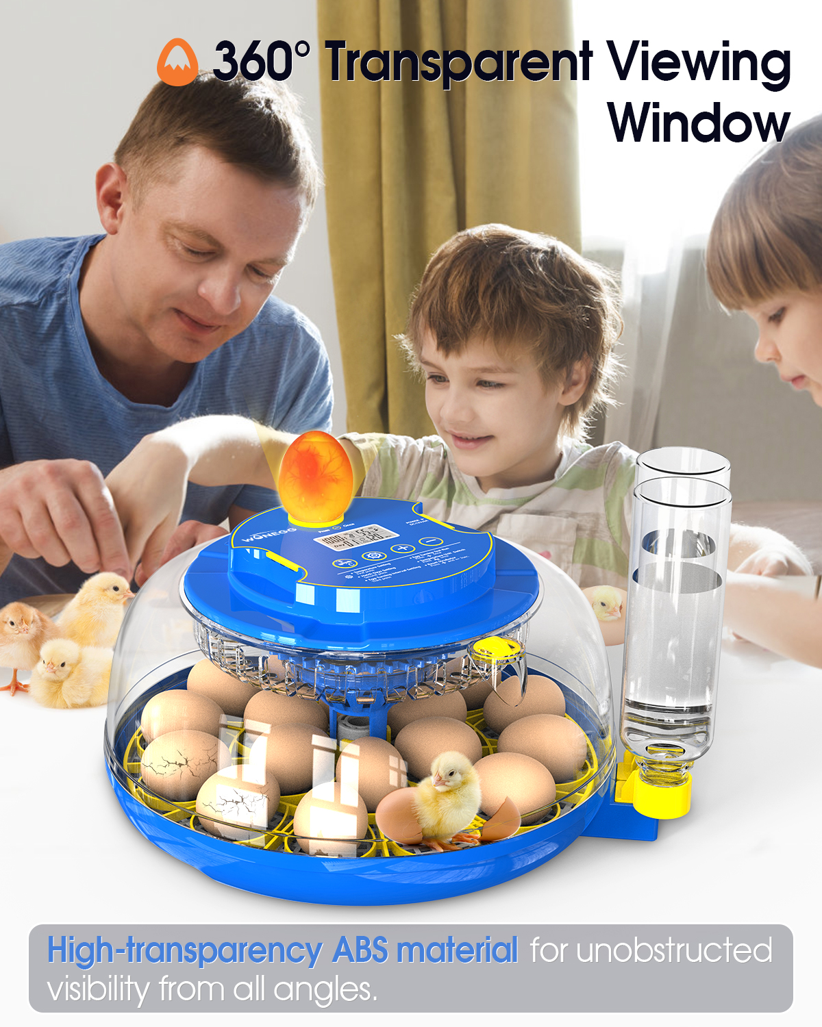 [Precision Temperature Control] – Our digital incubator maintains professional-grade temperature accuracy within optimal hatching ranges. An advanced airflow system with silent fan technology ensures even heat distribution, while real-time monitoring provides instant visual and audible alerts for any abnormal change—increasing the hatching rate.
