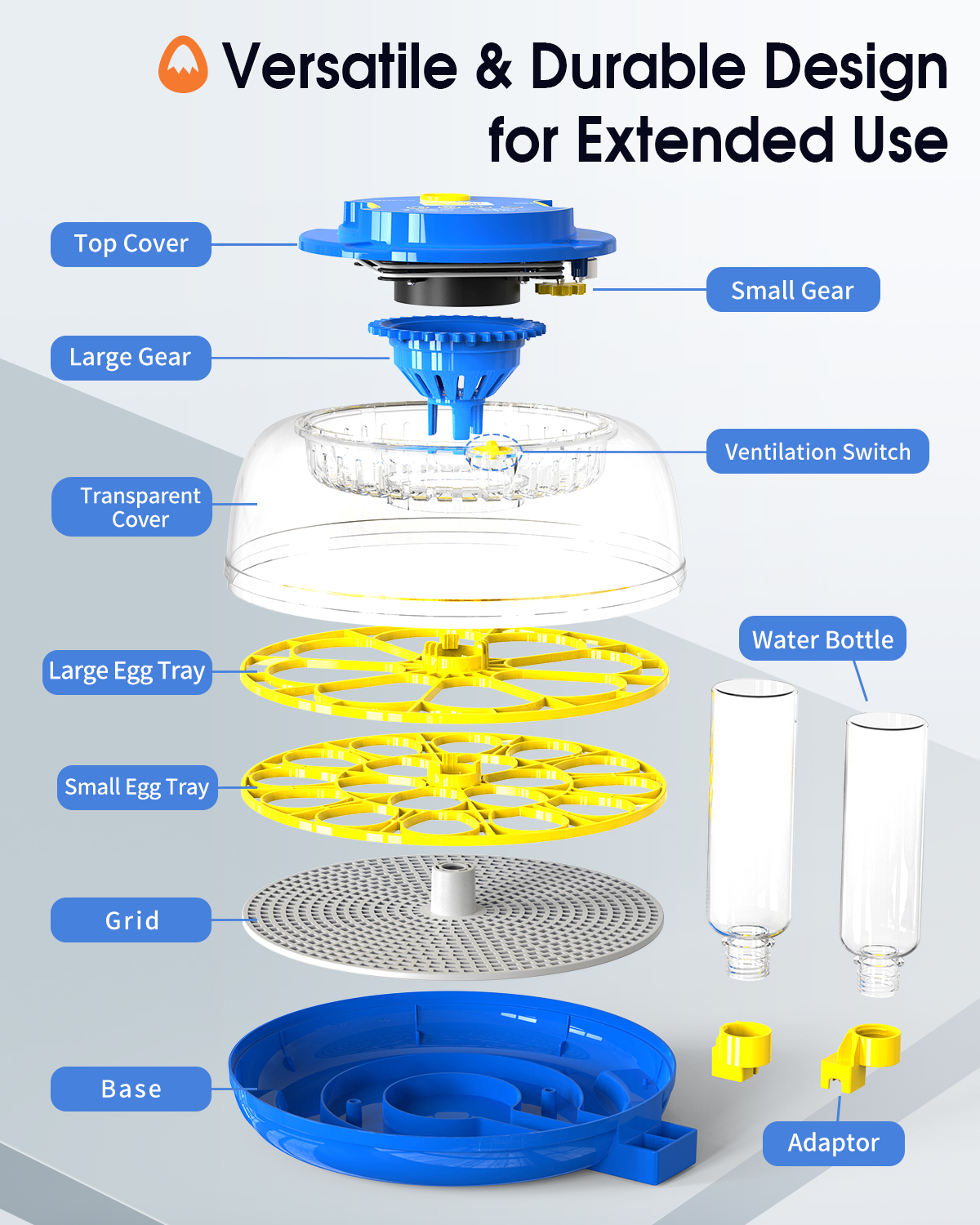 🚿[Auto-Regulated Humidity System] – The water system automatically sustains ideal humidity levels. Its sealed construction prevents outside interference, and smart replenishment adjusts to your eggs’ needs across all development stages—avoid the need for frequent manual refills.