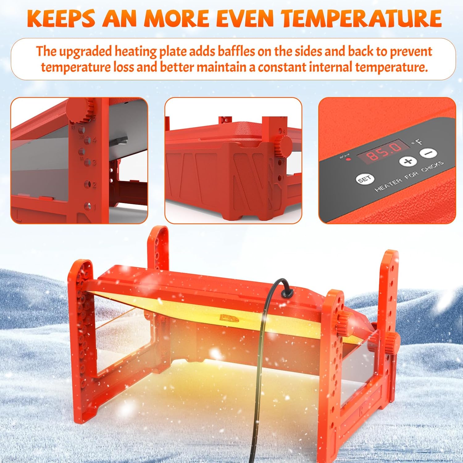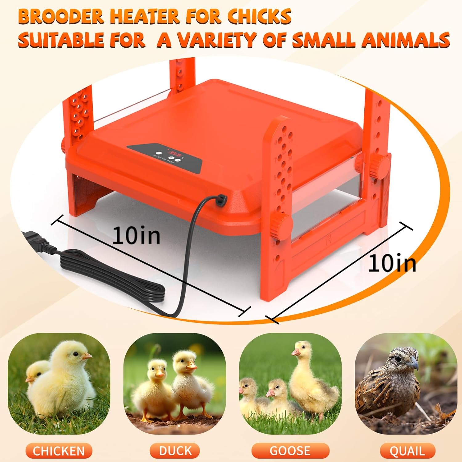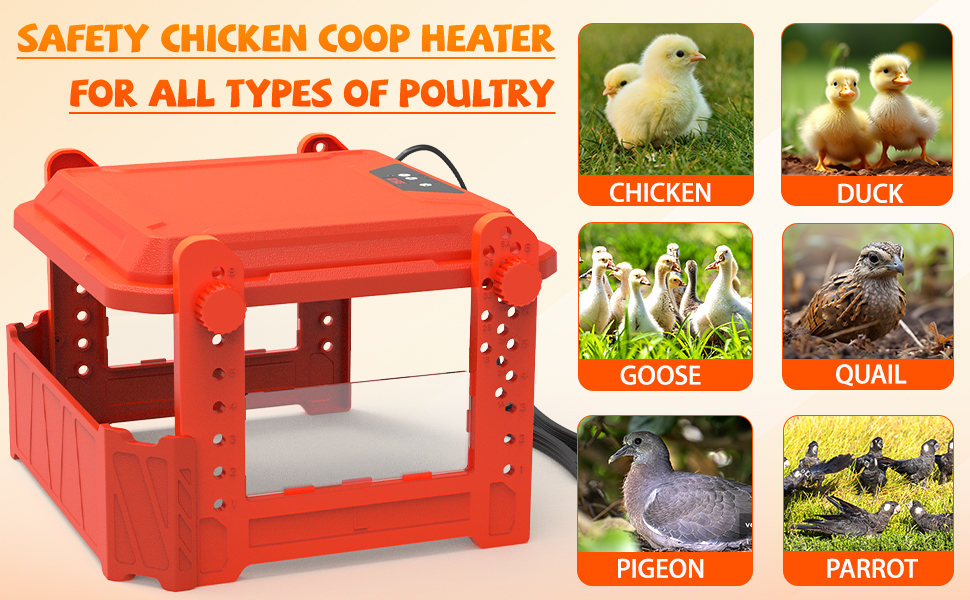 【Adjustable Height & Angle】Chicken Brooder Heater with easily adjustable height and angle settings for accommodating various chick sizes. You can also observe the LED display and adjust the temperature according to the environment.